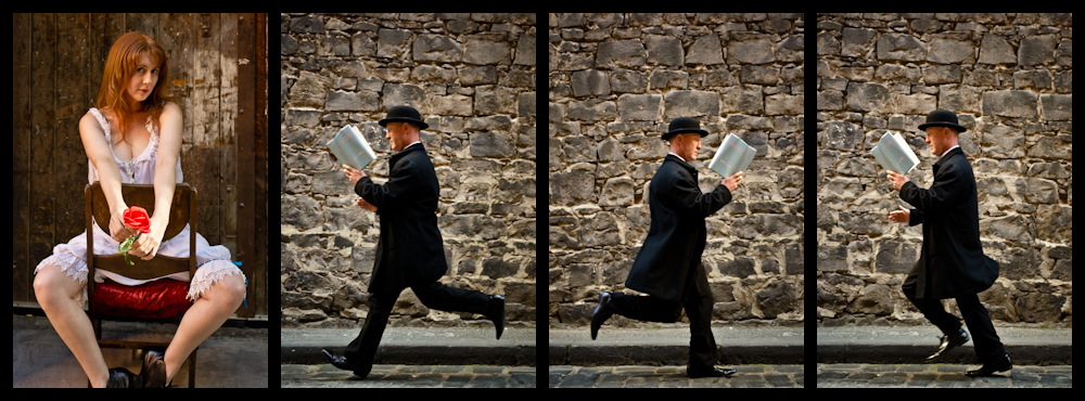 Pearn has selected for Ulysses Prestissimo a strong team, and the play has been in rehearsal for some months. His process of casting is meticulous and once in place, the actors undergo a grueling but exhilarating process of internalising their characters. Some are actors returning to Bloomsday for their third or fourth or even fifth immersion in Joyce, so they are quite experienced – like Drew Tingwell, Debra Low, Silas James, Liam Gillespie and Gerry Halliday. The newcomers – Catherine Kohlen, Leeanne Cairnduff, Steven Dawson and Chris Boek – are able to profit from the depth of understanding of the serial Bloomsday Players. It’s been fascinating to watch what actors bring to the staging of the play: Steven Dawson has a long history of working in comedy and will chance his arm at anything exuberant, and is drawing on his background in Wildean comedy to give us Buck Mulligan, and in some other mysterious part of himself, in rendering the cross-gender Bella/Bello. Debra Low, as in Seven Ages, is exploring a number of cameos which allow her to showcase and strut her best physical theatre and clowning repertoire. Leanne Cairnduff, like many of the women characters in this show, which is heavily weighted as is the novel, towards men, is finding her inner manliness, in particular as The Citizen, and Chris Boek is called upon to be Blazes Boylan, cad and roué, as well as a range of gentleman-scholar types. The multiplying of cameos in this show is a good testing ground for actors’ skills. The leading lady, Catherine Kohlen, who plays both the inhibited Gerty and her polar opposite, the Mediterranean Molly, gets also to play a few men. As Molly, she is canny and wily, but also winning. Actors report that playing Joyce is undoubtedly as difficult as playing Shakespeare, and as rewarding.