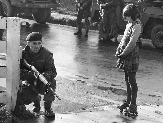 Women and girls were very much in the minority in this listing of 3635 deaths (about 10%). While they certainly participated politically and carried out important roles in ending the conflict, it was unusual for women and girls to be directly in the line of fire. Nevertheless women were certainly in danger living in that conflict ridden region as the book makes clear. In giving details of just a handful of the deaths so carefully recorded there, Gillian adopted the same detached style in recounting the details. The casual violation of private spaces (watching TV, bathing the baby, in bed, at Collie Club and greyhound meets), the accidental fatalities of children in cross-fire, the deaths at the hands of those ‘on the same side’. The point was eloquently made: religion or politics were often not essential factors of many of these deaths. Incendiary bombs, pipe bombs, bullets and napalm make no distinction, and those who wielded such weapons made many errors of identity and judgment.