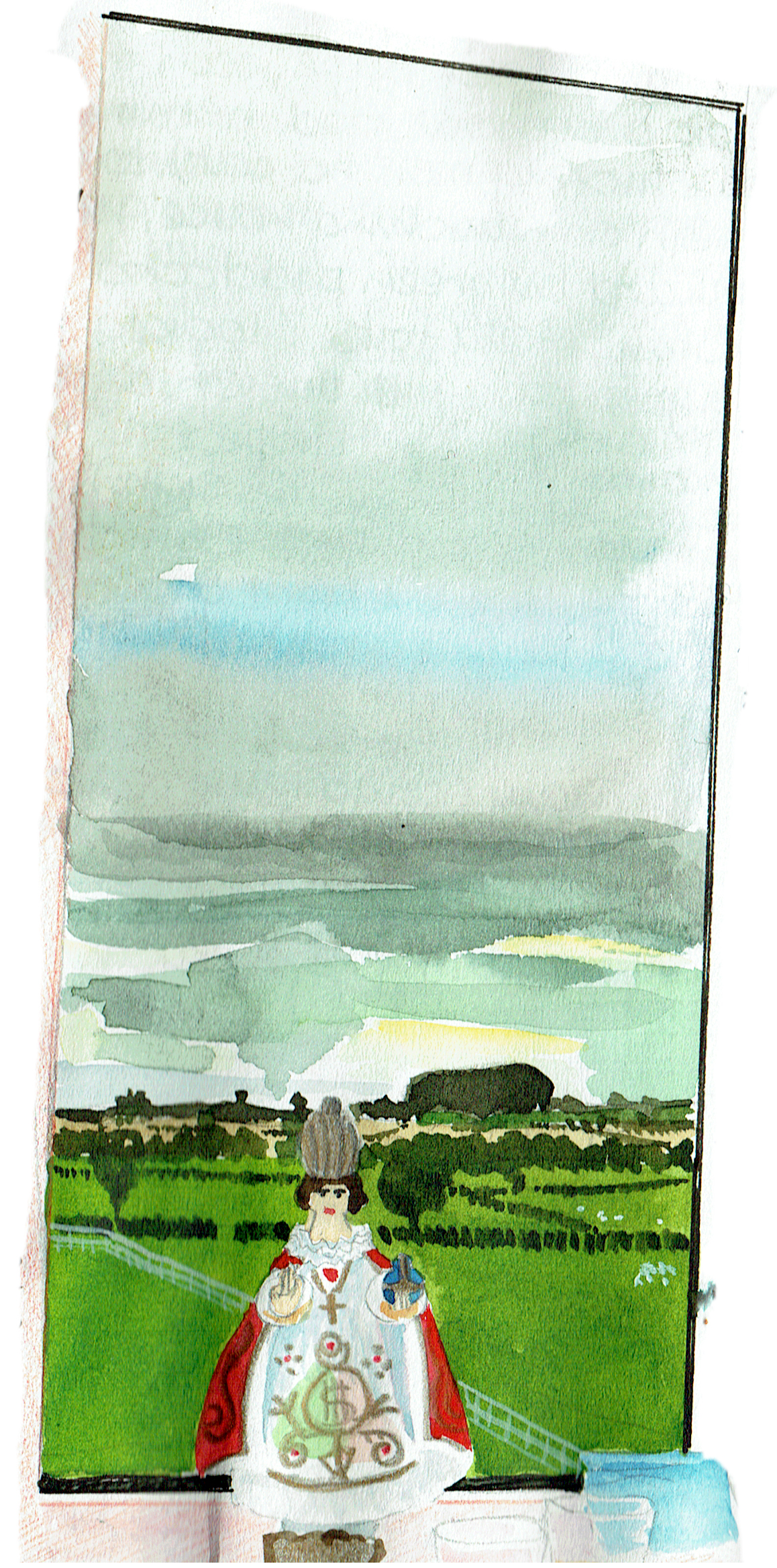 Mary Newsome is an inveterate traveller and has engaged in a variety of artistic practices as she travels, sometimes painting French cakes before consuming them, or depicting the scene from her window every day. She travelled in Ireland for the first time in 1994, partly for the joy of travelling, but also in the hopes of finding traces of her great-great grandfather, Roger Reynolds whose son Edward Reynolds migrated to Melbourne in 1854 on the ship Merlin to practise law. Mary has a quizzical and whimsical eye and the charm of this diary is its mixture of language and illustrations in the form of ink and watercolour sketches. On this trip, she typically took notes and sketched and completed her diary and the watercolours at night on the same day. We’ve reproduced her images, but not always properly sized (limitations of the program used for this magazine) and they look much better in the original, so we include one page in its original format (3 September), with text winding around sketches. Mary later became a much-collected and celebrated print-maker and maker of artist’s books. We thought our readers might relish a slightly edited account of a sympathetic outsider’s view of Ireland in 1994.