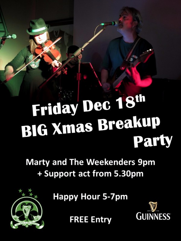 - Friday 18th (Big Xmas Party) – Marty Kelly and the Weekenders + support act from 5.30pm