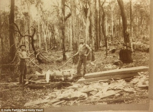 The photograph was owned by Ellen Kelly, Ned’s mother and passed on to her family after her death in 1923. It shows two young men working as lumberjacks. The year is 1874 and the suggestion is that the man on the right is 19-year old Ned Kelly. There are reasonable guesses as to who the other man could be, although it can be said with some certainty that it is not his brother Dan, as claimed by some, because he would have been only 13 at the time. The state of photography in 1874 was such that it is thought this is a copy made some years later.