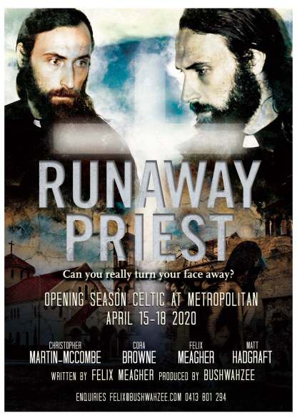 Nature of Event: A new musical play by Felix Meagher entitled Runaway Priest will premiere at Celtic at Metropolitan, North Melbourne on Wednesday April 15.