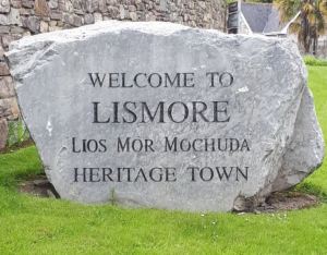 Until fairly recently, the town of Lismore was known in Irish as Lios Mór Mochuda (Mochuda’s Lismore). Then came a trend to drop the ‘Mochuda’: road signs for instance, or the sign over the Post Office, use only ‘Lios Mór’. It is good to see the full name on the newer ‘Welcome’ signs on the approach roads from Tallow and Cappoquin. The name is also found in Scoil Mochuda (a primary school in Lismore under the patronage of the Church of Ireland), and in Bóthar Mochuda, a new residential area. Of course it has always been there in the townland of Seemochuda. Both the Catholic and Church of Ireland churches are named St Carthage’s, as is St Carthage’s House (a residential care home).