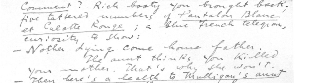 Manuscript of Ulysses: ‘Curiosity to show: – Nother dying come home father.’