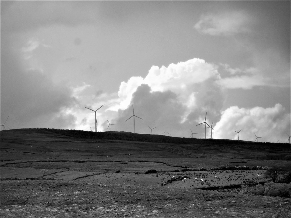 On that Spring Saturday afternoon in 2007, I had driven up from Letterkenny through Kirkneedy and then further on up the narrow road towards the modern electricity-generating wind farm on top of Cark Mountain. There I had sat enveloped in the spirit of this place with significant family locations at Kirkneedy, Roughan and the Glenswilly chapel not too far away. As the black clouds obliterated the wind tower blades from sight and rain beat down on the car, I experienced a dark glowering sense of unease about this place. But as the sun appeared in blue skies and the wet vegetation and wind-tower blades glinted in the sun, this disquiet was followed by a shining verdant sense of peace and relaxation.