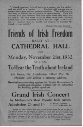 Though most of the books read to me as a boy were set in England, I did not feel myself to be truly English. As an Australian, I knew I was associated with England. But, in truth, I felt I had a more distinctly Irish flavour. The reason for this lay mainly with my mother. She brought a sense of immediacy to this Irish identity in a number of ways. She told me tales of her own Irish grandfather. She taught me that, like her, I must wear the shamrock proudly each St Patrick’s Day. And on each St Patrick’s Day she told me how lucky I was to see that great Irish patriot, Dr Daniel Mannix, presiding over the procession from his open-top car in front of Parliament House.