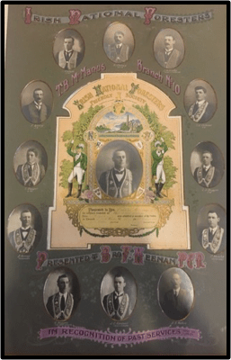 The Irish National Foresters were a Friendly Society that commenced in Ireland and then started in Melbourne in 1886 and eventually spread across Australia. Known as the INF they provided for members medical benefits and funeral cover along the lines of other Friendly Societies along with a social, community focused platform. They differed from most other Friendly Societies in Australia in that members had to be Irish-born or of Irish descent. They set up branches across Melbourne, mainly in the inner suburbs and areas with large Irish populations. Richmond, Collingwood, Fitzroy, Clifton Hill, North & West Melbourne, Brunswick, Coburg and Northcote were INF strongholds, as were regional areas that had strong Irish populations such as Ballarat, Geelong, Bendigo, Maryborough, Kilmore and mining towns across Gippsland.