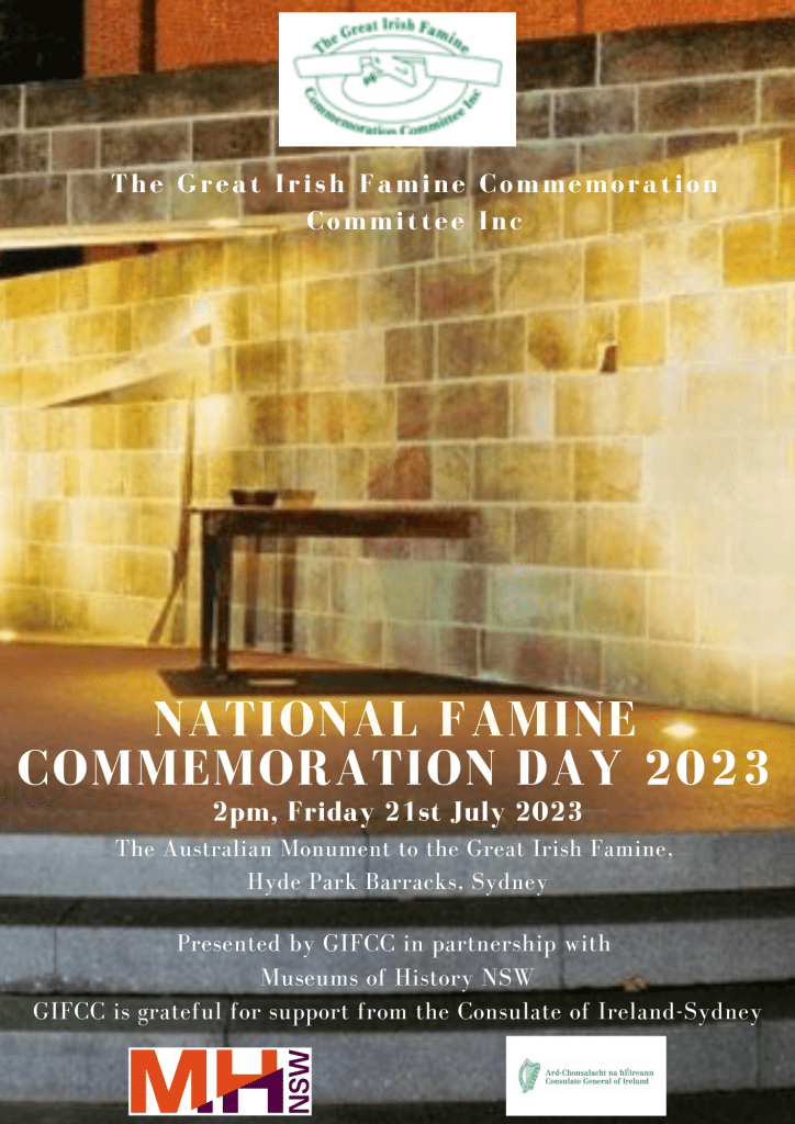 Others have fond memories of the first Sydney Commemoration, in August 2013, that coincided with the launch of that great book, Atlas of the Great Irish Famine, (Cork University Press, 2012). This year, the International celebration has returned to Sydney. It will be held on 21 July.