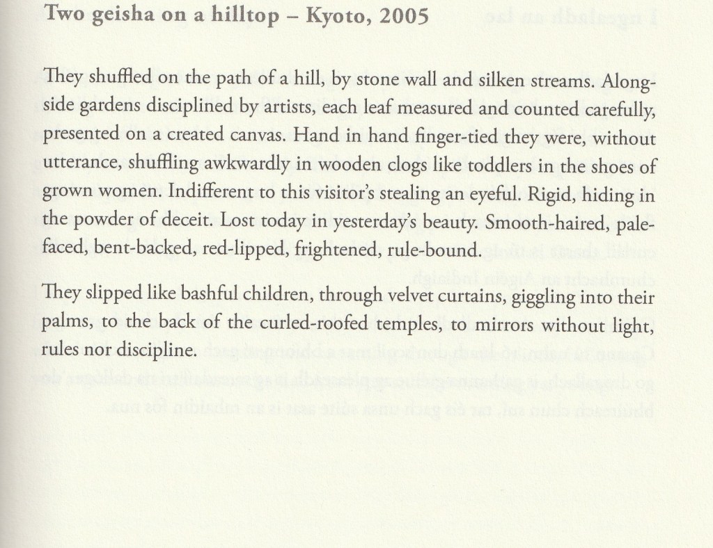 Ireland’s foremost Irish language magazine is Comhar https://comhar.ie. They recently published two prose poems from Julie Breathnach-Banwait’s bilingual collection Cnámha Scoilte in the Irish language version only. I have provided the English language version of the Geisha poem below. Cnámha Scoilte/Split Bones is available from Bobtail Books https://bobtailbooks.com.au/ and at The Hobart Bookshop, Salamancar Square for anyone visiting Tasmania where Julie lives.