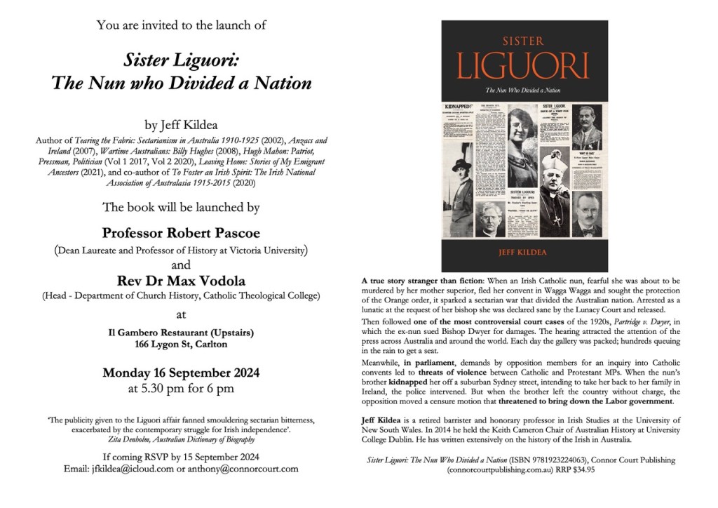 A Book Launch: Jeff Kildea’s Sister Liguori