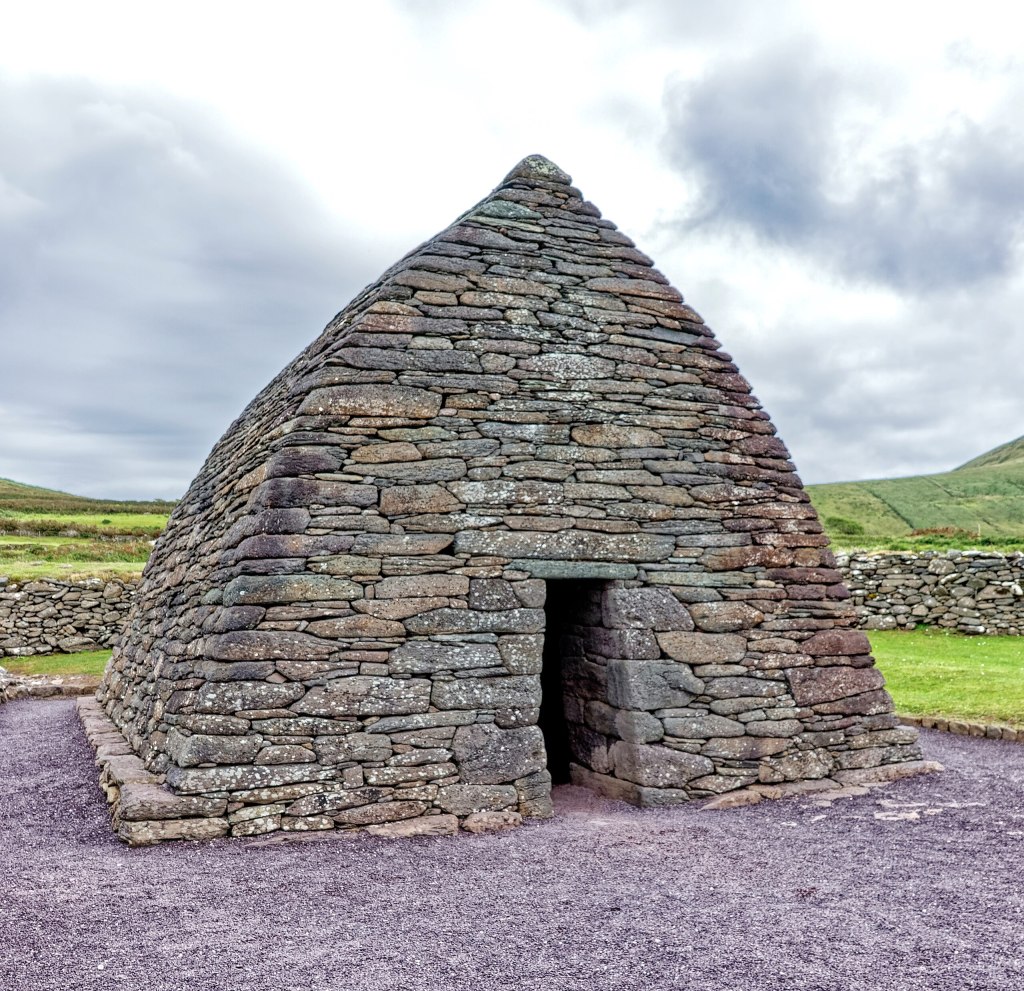 L to R: Newgrange, Photo by author, Jules McCue; Gallarus Oratory, Co Kerry. Wikimedia Commons