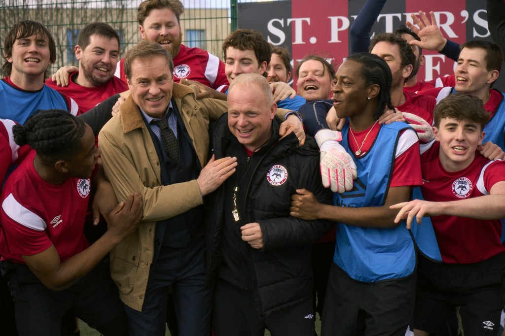It’s OK: relax, no hankies required. Unlike many independent movies from Ireland in recent years, this is a gentle, low-key and amusing film. Fran the Man, a spin-off from a TV series from fifteen years ago, adopts the well-worn trope of a documentary crew following a character and their social environment – The Office, Parks and Recreation, Spinal Tap, Best in Show, A Mighty Wind. In this case it’s Fran Costello (Darrah Humphreys), Assistant Manager of St Peter’s United, who finds himself in the spotlight when his tiny Leinster club come up against mighty Shamrock Rovers. Gambling criminals from around the world target the match, which attracts the police and just about gives the ‘documentary’ something to get its teeth into.