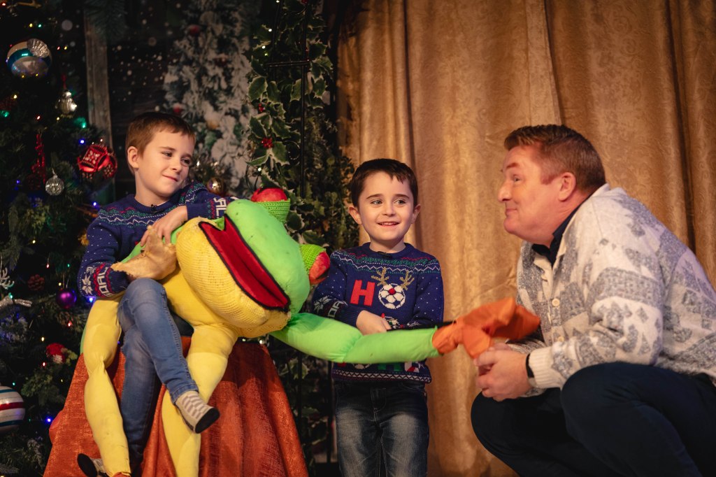 Brashly delivering a plot that could have been dreamed up by Martin McDonagh of Seven Pychopaths renown, two brothers, Fiachra (Sean T. O’ Meallaigh) and Tadgh (Georoid Kavanagh) Fitzgerald, who at the age of nine and six respectively became a sensation on a local TV Talent Show in their native Galway with an act featuring a soft cloth puppet named Froggie which spoke and sang in a muppet like accent and attempted to rivet a children’s audience with a sweetly innocent message of ‘following your dream’.