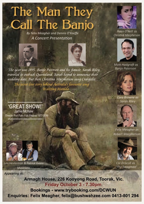 Concert Performance of (the bush musical) The Man They Call the Banjo by Felix Meagher and Dennis O’Keeffe. A one-off performance at Armagh House, Toorak, on 3 October 2025.